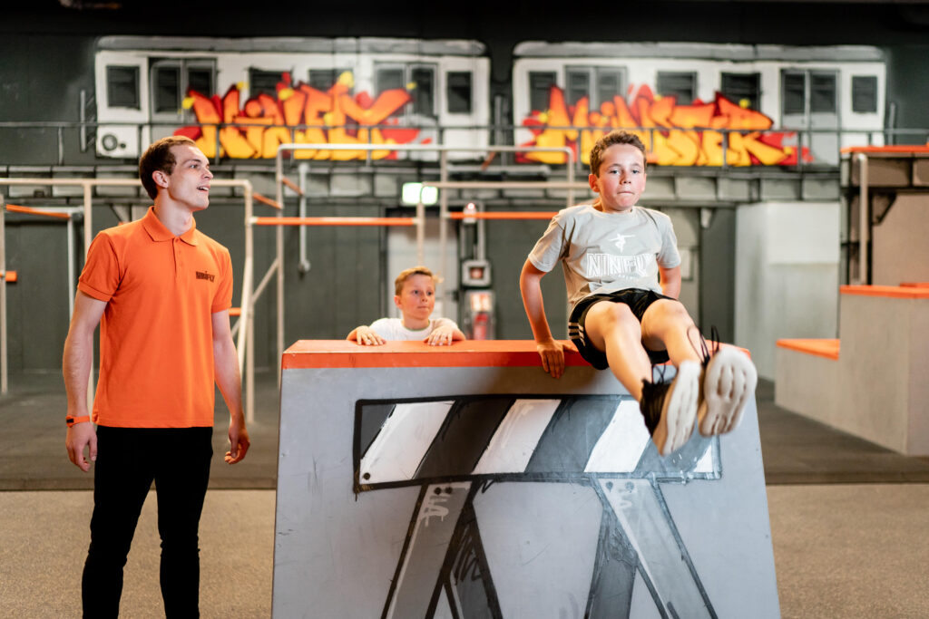 Die Ninja Sports Arena ist grundsätzlich für Besucher ab 16 Jahren. Uns liegt am Herzen, dass dort der Sport im Fokus steht und dieser Bereich nicht als Spielplatz missverstanden wird. Dennoch bieten wir sportlich interessierten Kids ab 12 Jahren die Möglichkeit, die Ninja Sports Arena zu unseren ausgewiesenen Ninja Kids Zeiten zu nutzen.